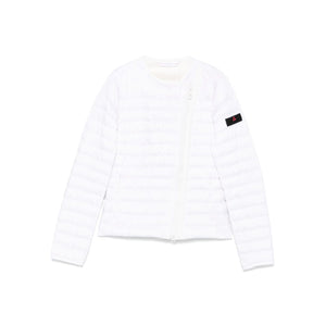 white two-way zip fastening two side zip-fastening pockets crew neck logo patch at the sleeve Nylon down jacket Size and Fit - This piece fits true to size. We recommend you get your regular size. Model is 1,75m / 5ft 8in wearing size 40 (IT)