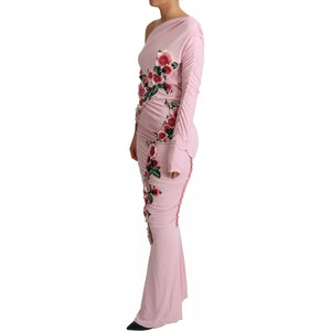 Dolce & Gabbana Pink Flower Embellished One Shoulder Dress
