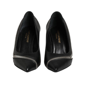 Saint Laurent White Black Leather Pointed Toe Heels Shoes