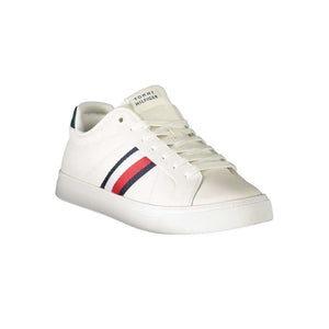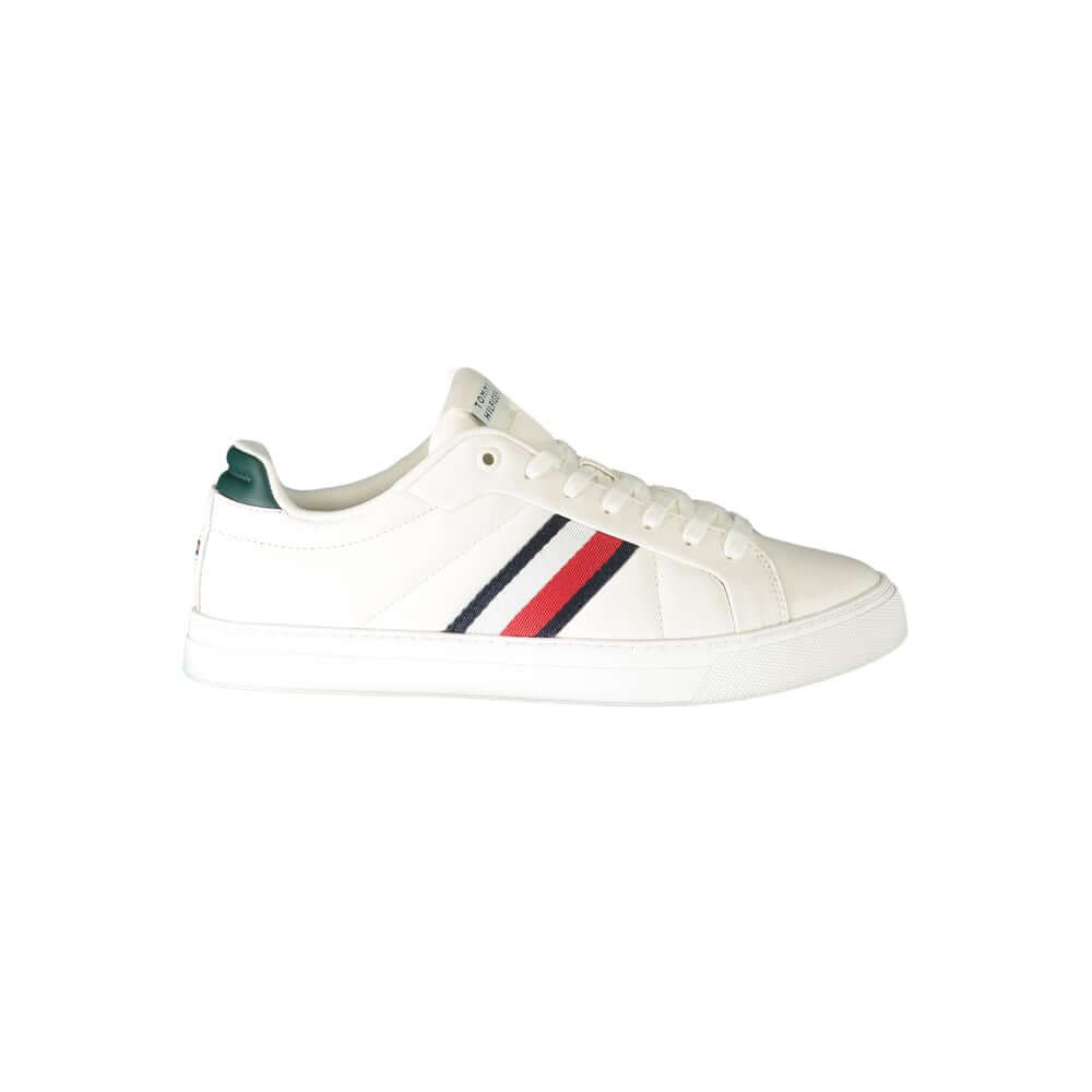 Defy conventions with Tommy Hilfiger’s statement sneakers that flawlessly blend comfort with a bold edge. These kicks are a cut above the rest with contrasting green accents and the iconic logo that pops against the pristine white. Crafted for the modern trendsetter, they are a seamless fusion of high-quality materials, consisting of resilient polyester, luxe leather, and durable polyethylene. Designed in CN, they embody a sporty sophistication that takes you from daytime hustle to evening escapades with ease. Make a sartorial splash with these Tommy Hilfiger must-haves.