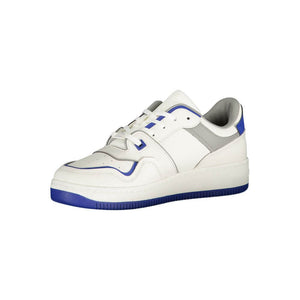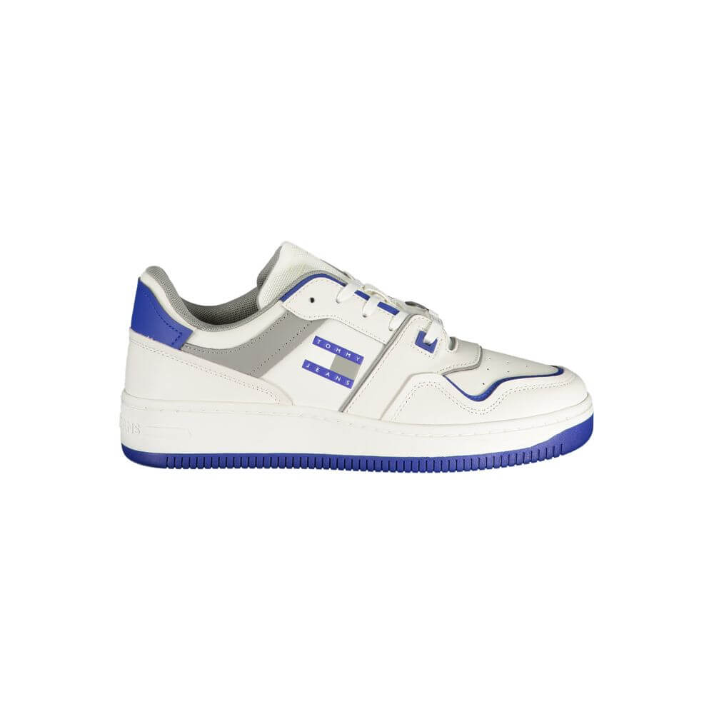 Step into the realm of effortless style with these striking Tommy Hilfiger sneakers. A harmonious blend of royal blue pops against the pristine white backdrop, accentuated by contrasting details that exude a suave, athletic charm. The iconic Tommy Hilfiger logo is tastefully emblazoned, asserting its heritage with grace. Designed for the modern man on the move, they offer a playful twist on the quintessential sports shoe, merging fashion with the comfort of laces and a meticulously crafted material composition.